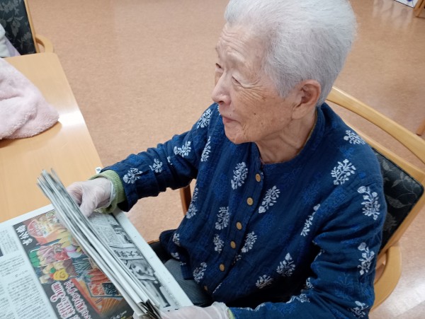 スタッフが新聞畳みをしていると
