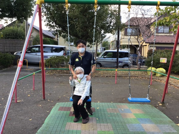 鉄棒やすべり台、ブランコは利用者様も久しぶりだったようです(*^^*)