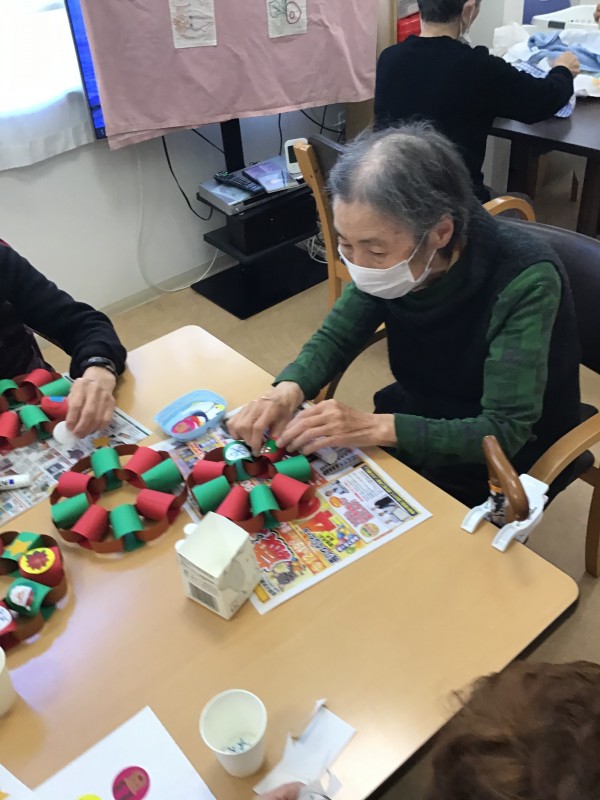 ということで、皆様にクリスマースリース作りをしていただいています。