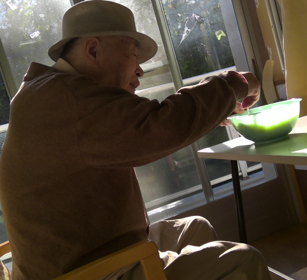 3階の利用者様にも、混ぜる工程を一緒にやっていただきました。
