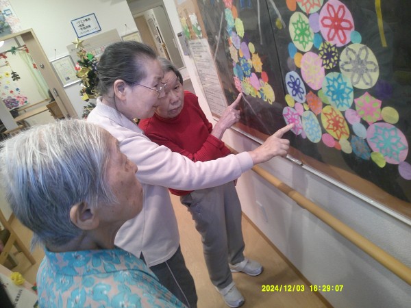 手作りクリスマスツリーを見ながら皆様は喜んでいました(^^♪