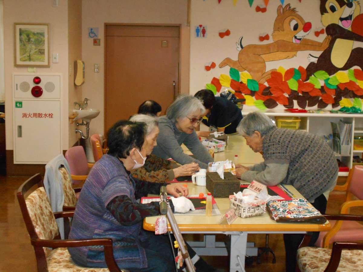 お花紙や折り紙で出来たクリスマスツリーやベルを