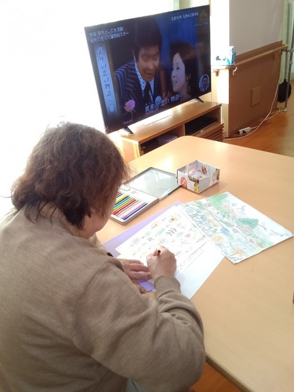 塗り絵やお手伝い・音楽鑑賞やおしゃべりなどお好きな過ごし方をされています。