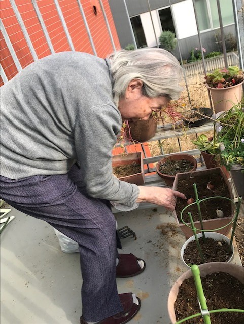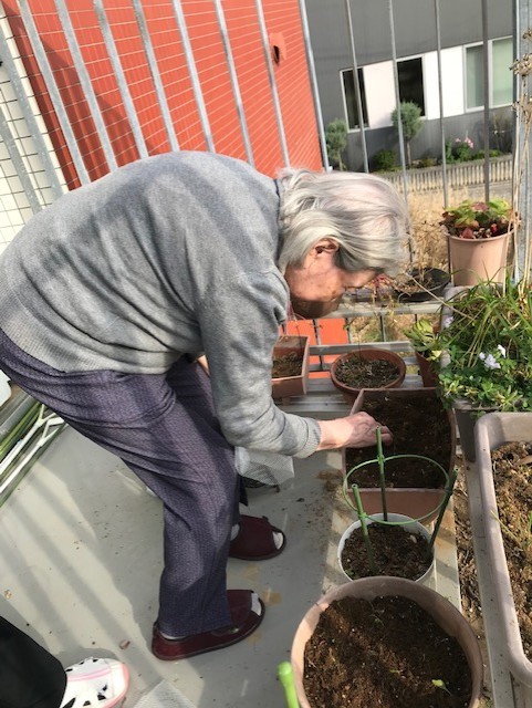 今回は、花を植えた様子と、物作りレクの様子をお送りします。