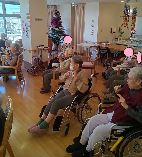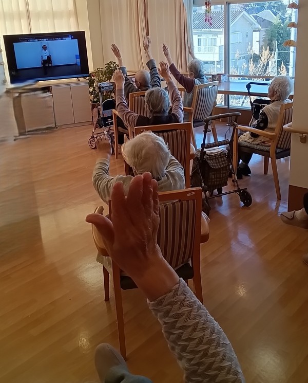 今回は、3階の食堂に集まってもらい、みんなで楽しく、体操をしました。