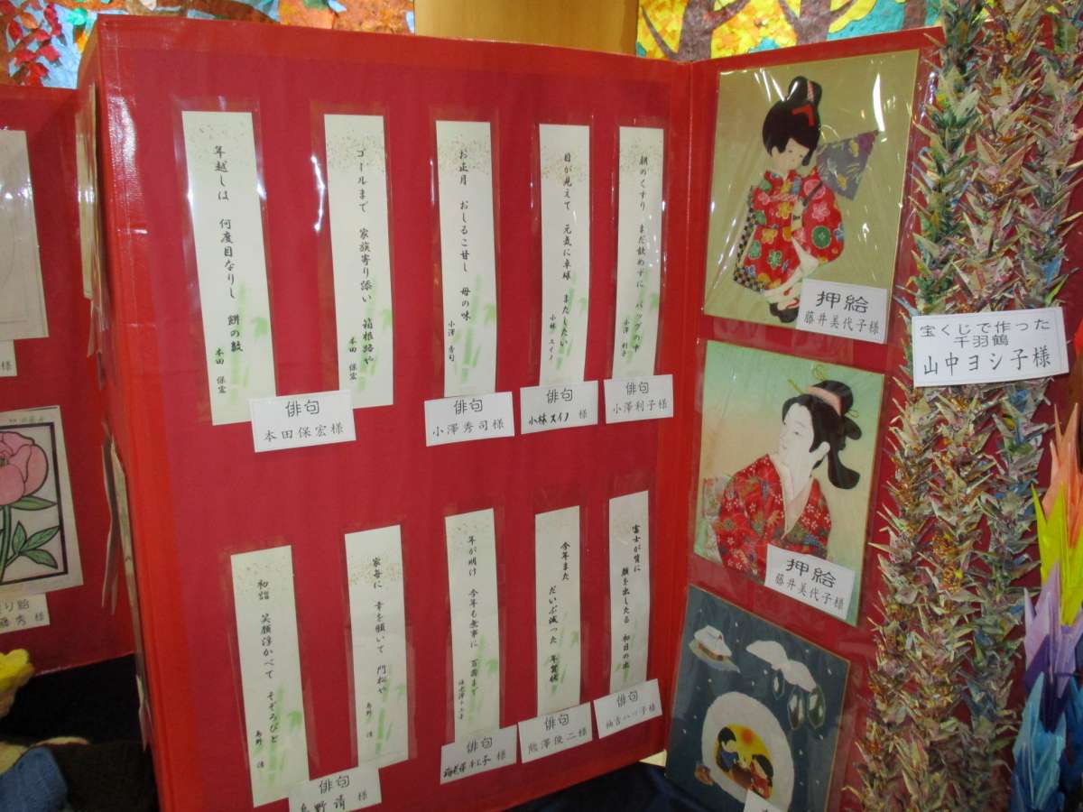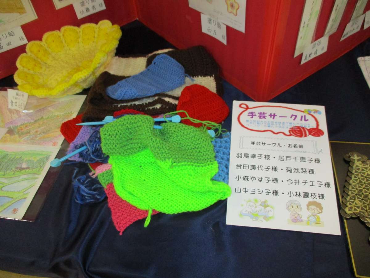 文化祭ではご利用者様の作成した作品展示や、過去に趣味活動で作った挿し子や手芸作品、写真集なども展示