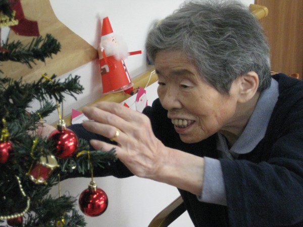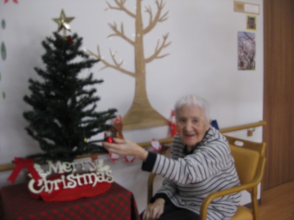 笑顔で楽しく飾りました。もうクリスマスなの?? と話され早いものですね?とビックリされておられました。綺麗に飾り付けが終えました。