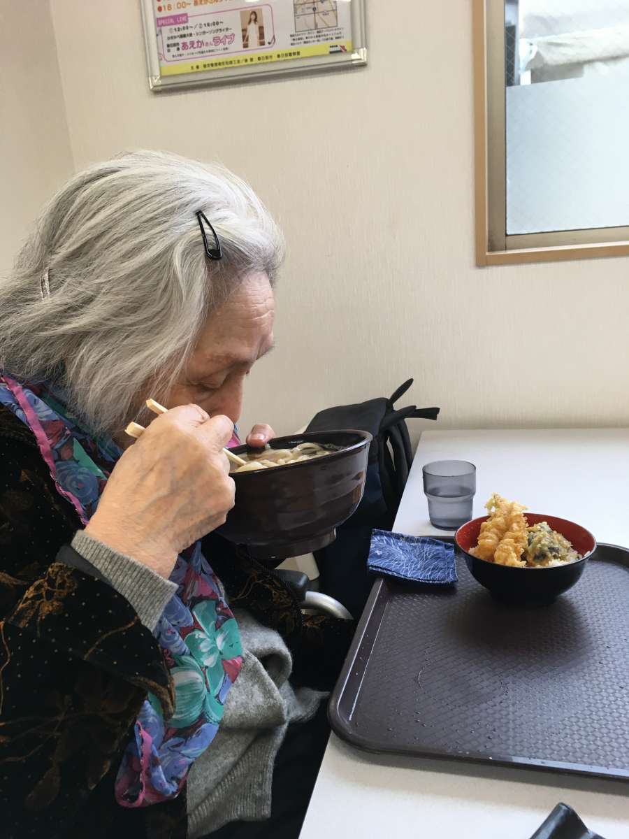 前回はちょうど昼食の時間でめちゃ混みでしたので、今回は早めの昼食タイムにしました。今回はうどんと天丼のセット、カレー、生姜焼き等美味しく完食してきましたよ♪普段はスプーンで召上っているご利用者様が箸でうどんをすすっている姿を見て、食べることの大切さを再認識することができました。それにしても皆さんよく食べること (^_^;)