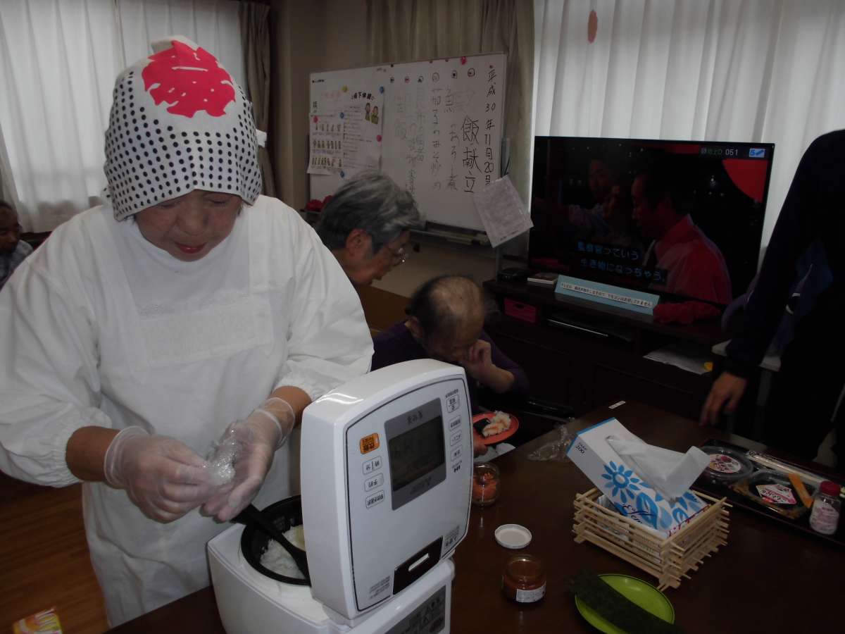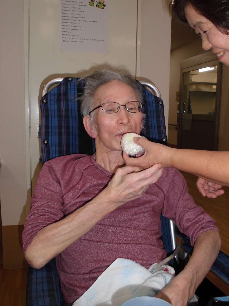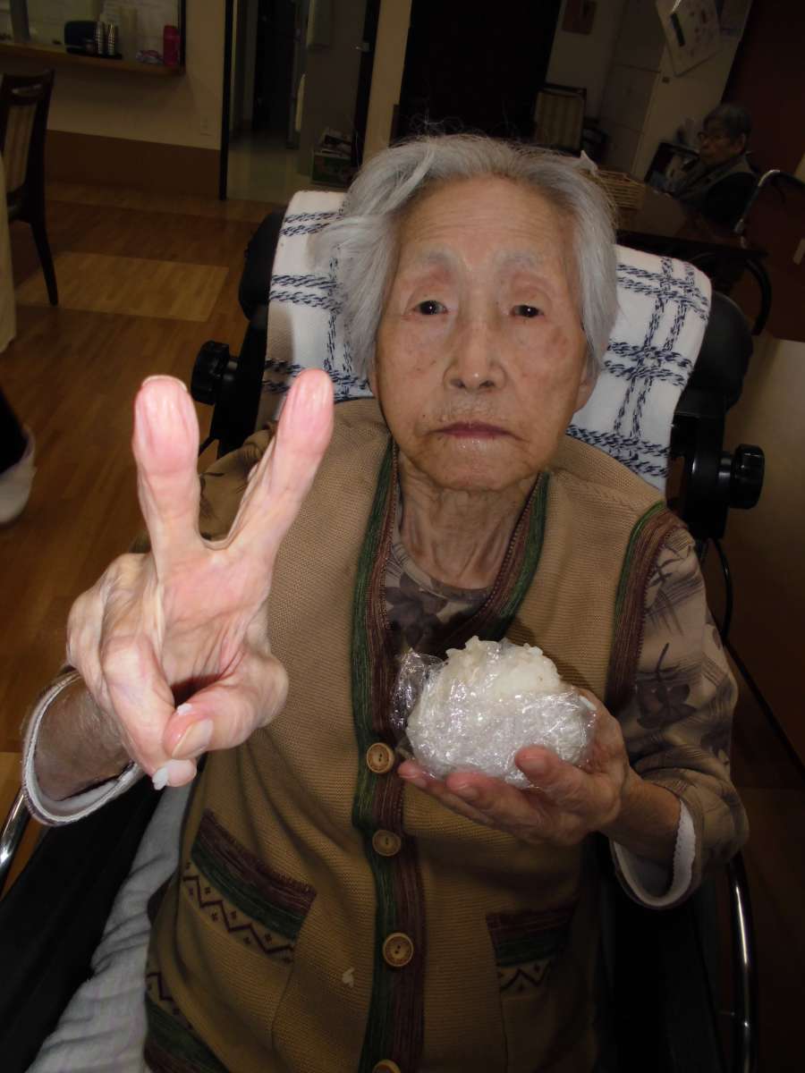 毎年『見沼田んぼありがとう米』として見沼田んぼの方に頂いている新米で、今年は『キヌムスメ』という品種でおにぎりを作らせて頂きました。職員がおにぎりを握り、ご利用者様・職員みんなで食べましたよ。
