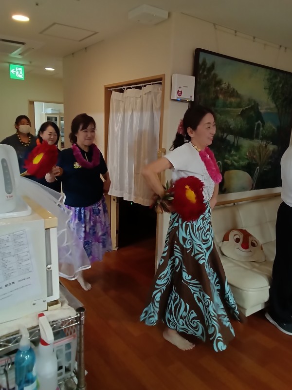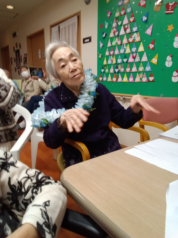 ご利用者の皆さんもレイをつけ毎日の練習の成果を発揮です!
