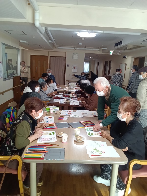 鈴谷地区社会福祉協議会の地域活動の中の「塗り絵サロン」を、グループホームみんなの家・与野鈴谷で是非とお誘いしました。