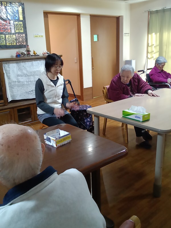 「なっとう、なっとう、ねーば・ねば」歌に合わせてご入居者様も腕振り参加してました。
