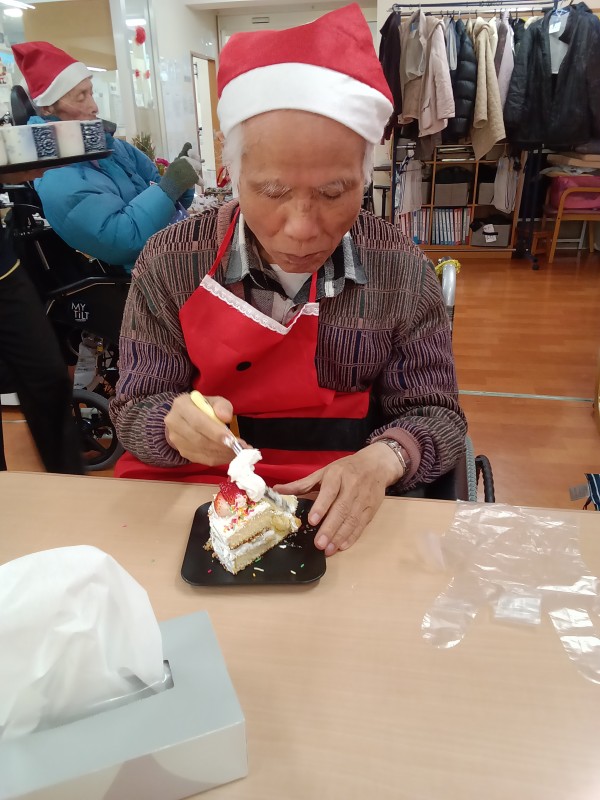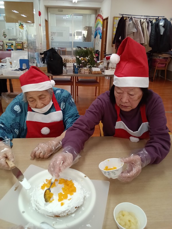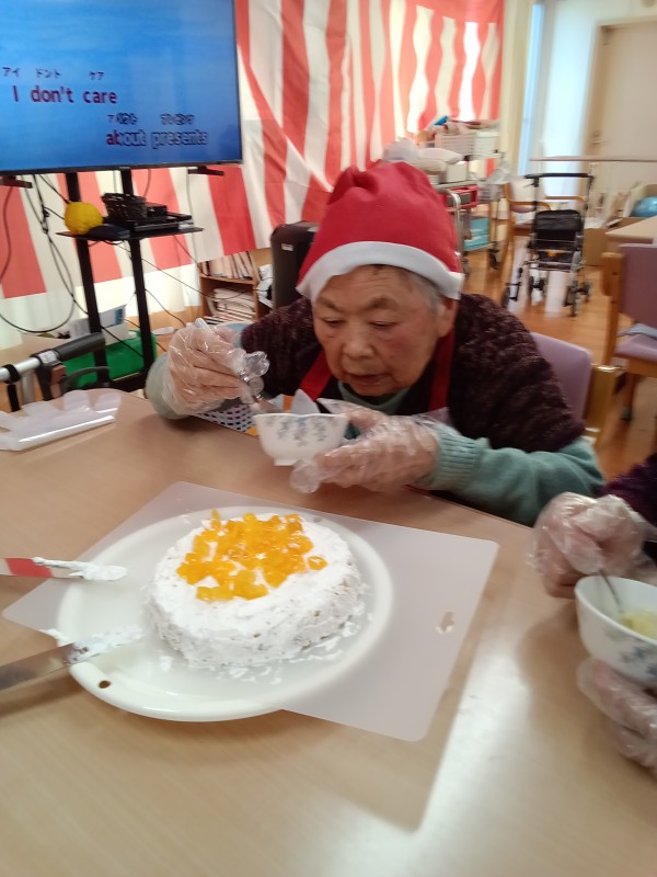 クリスマス会の後半、ケーキ作りの様子からです!