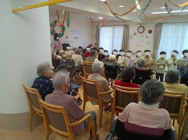 利用者様と園児たちと手をつないだり、プレゼント交換したり、