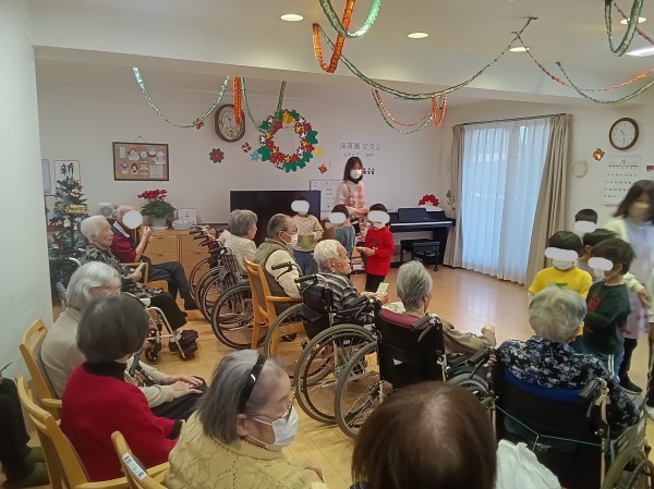 利用者様と園児たちと手をつないだり、プレゼント交換したり、