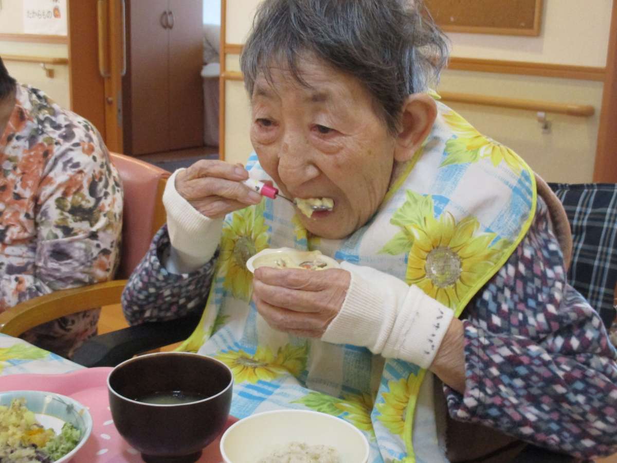 天ぷら5種類、茶碗蒸し、サラダなどの豪華なメニューを利用者様とともにスタッフも頂きました!