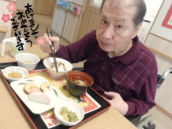 ・・・さて、元旦にはおせち料理を召し上がっていただきました!