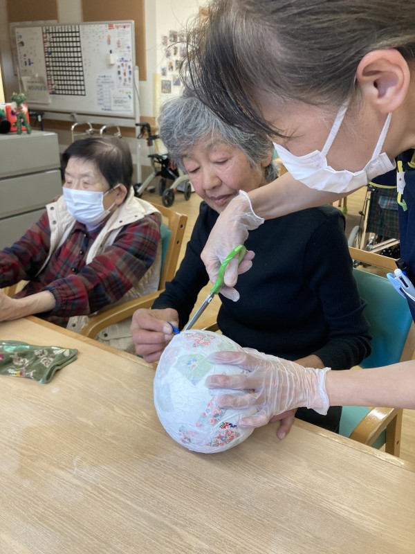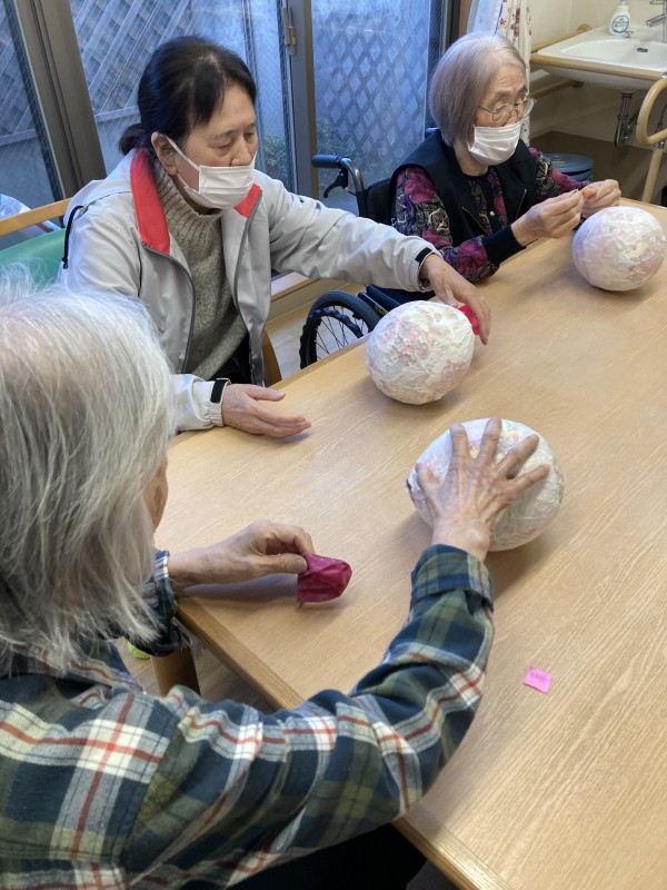 さて、今日は楽しい作業レク、「風船ボール作り」に挑戦しました!