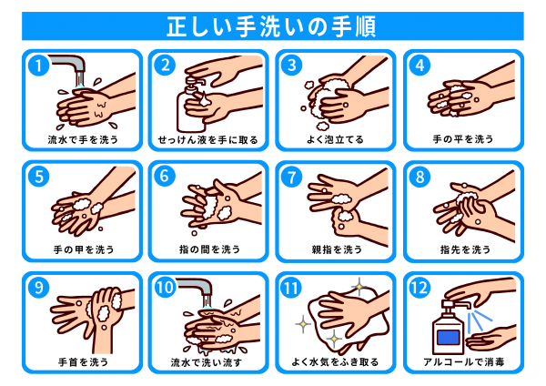 アルコールによる手洗いの正しいやり方を記載しますので、