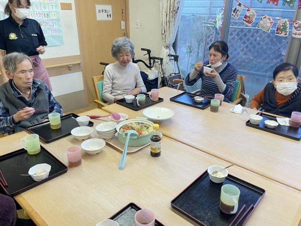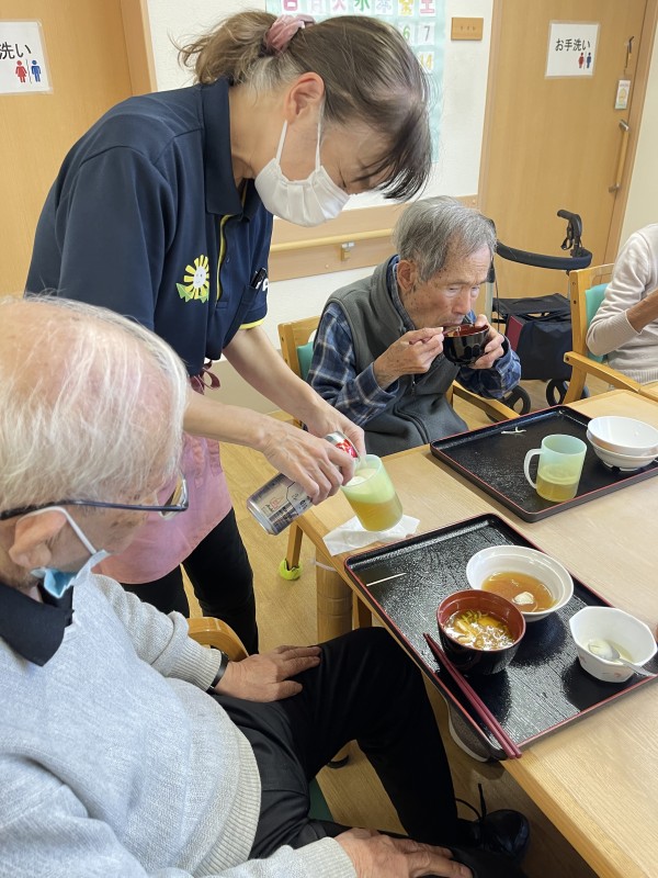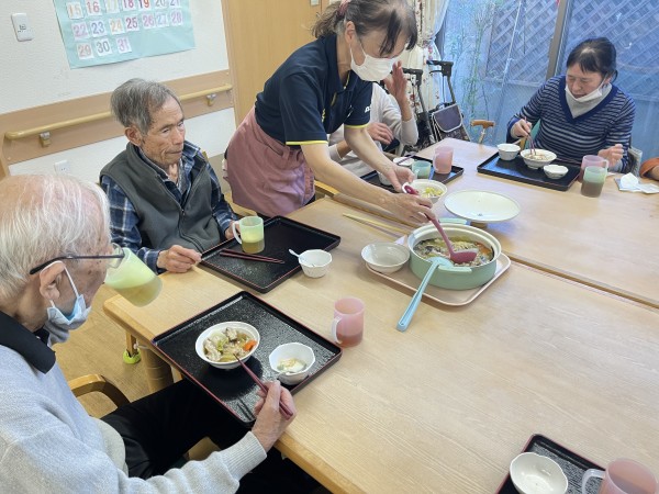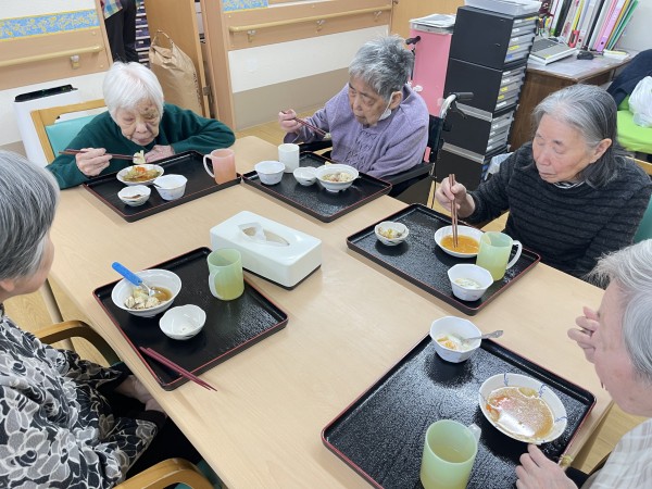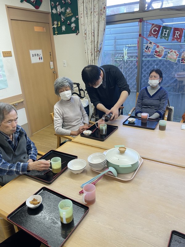 野菜たっぷりの具材と、柚子の香りが漂うお出汁が絶妙で、「これなら何杯でもいけちゃう!」と利用者さんたちに大人気。