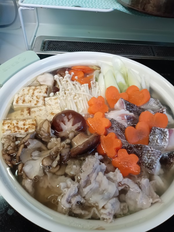 対する男性チームは、「ガッツリ食べて満足度100%!」をテーマに、お肉、魚たっぷり、のこってり系鍋を用意。