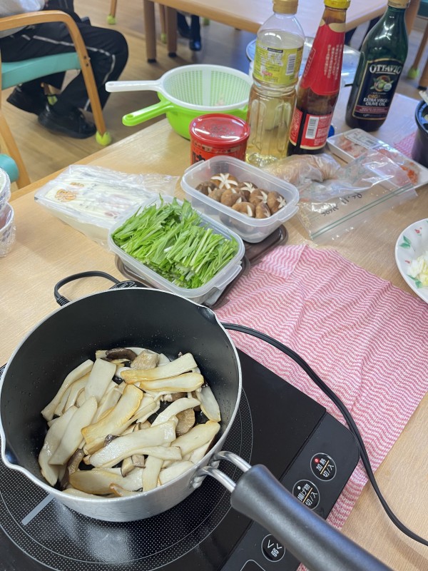 一方、男性チームはエリンギの甘辛煮を提供。「お酒が欲しくなる味だね」と絶妙な味付けにおかわりが続出しました。