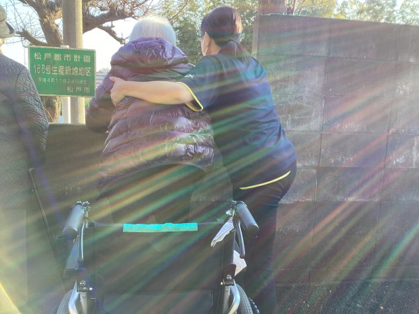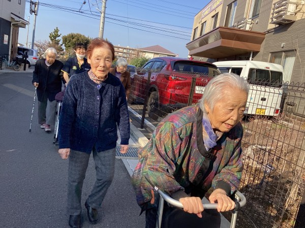 本日は少し暖かかったので、みなさまをお誘いし施設の周りをお散歩しました。