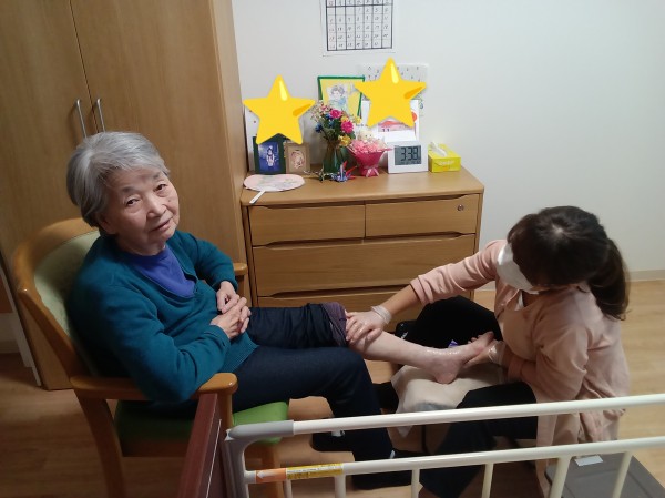 シニアセラピーでは足や顔のマッサージを受けながら、楽しいおしゃべりタイム♪