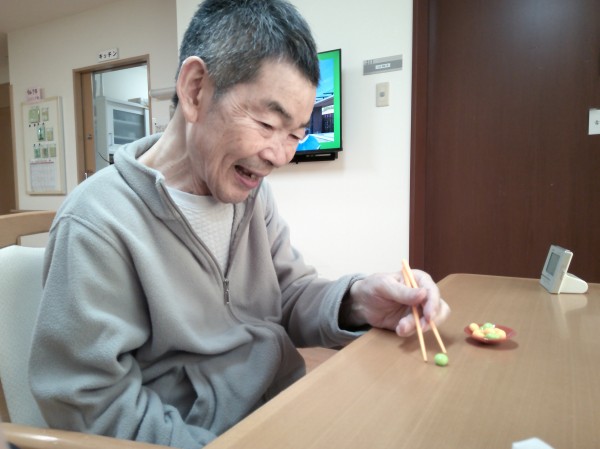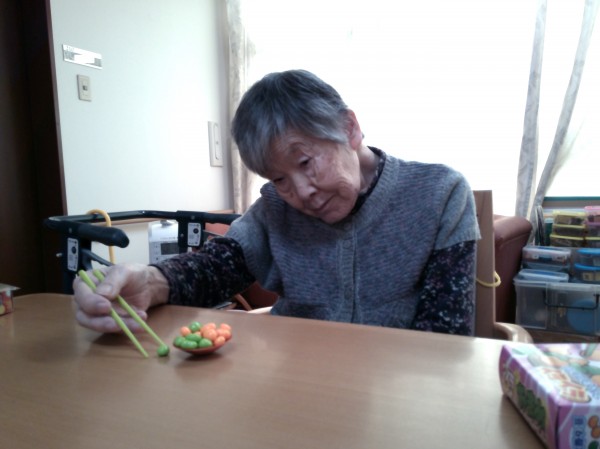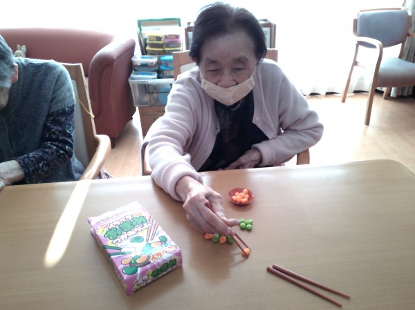 小さな豆を箸でつかんでお皿に乗せるゲームです☆★