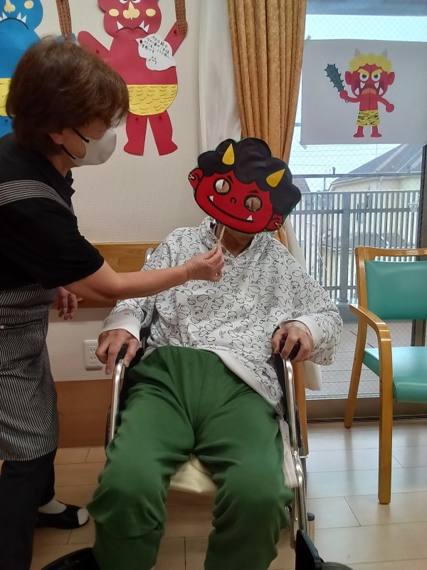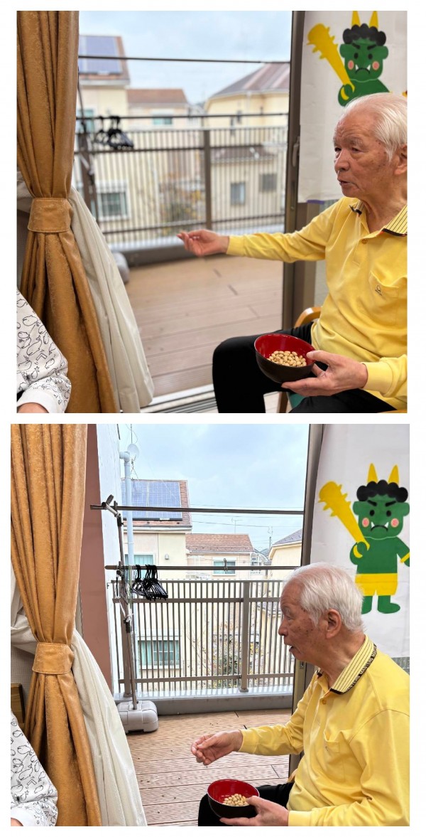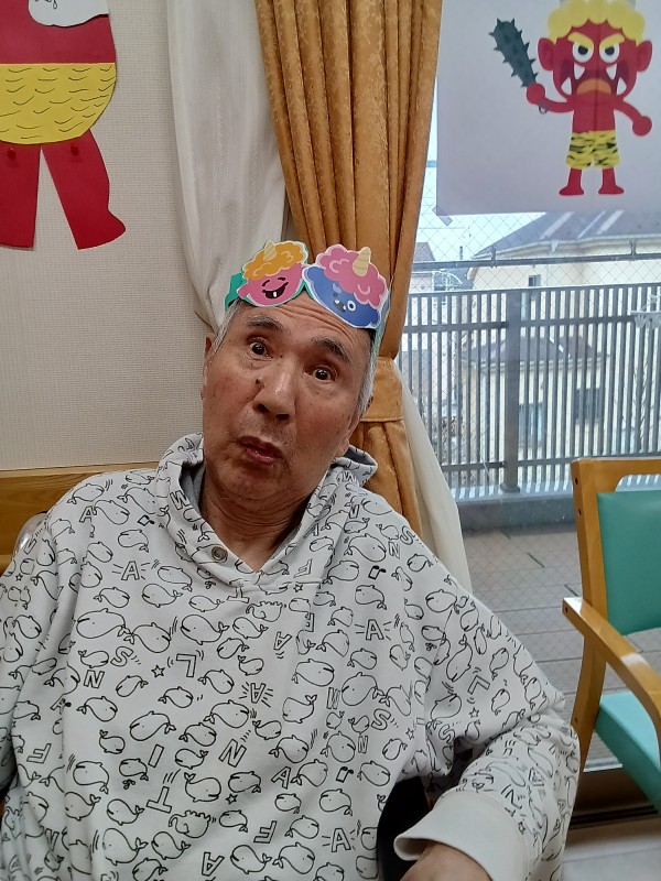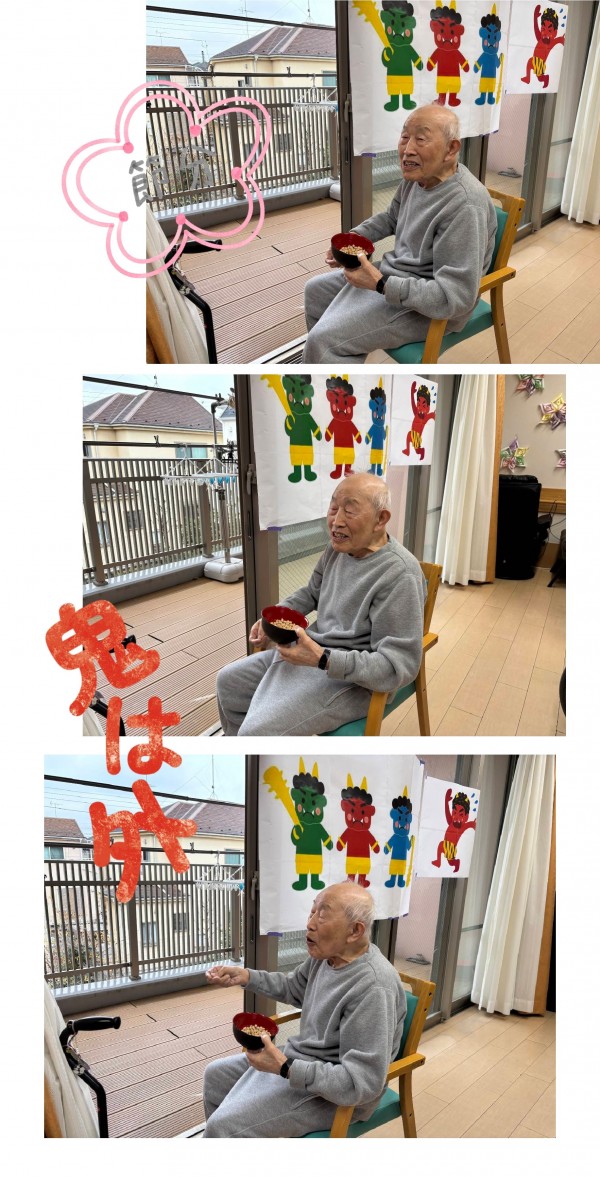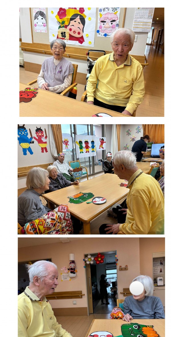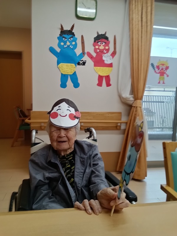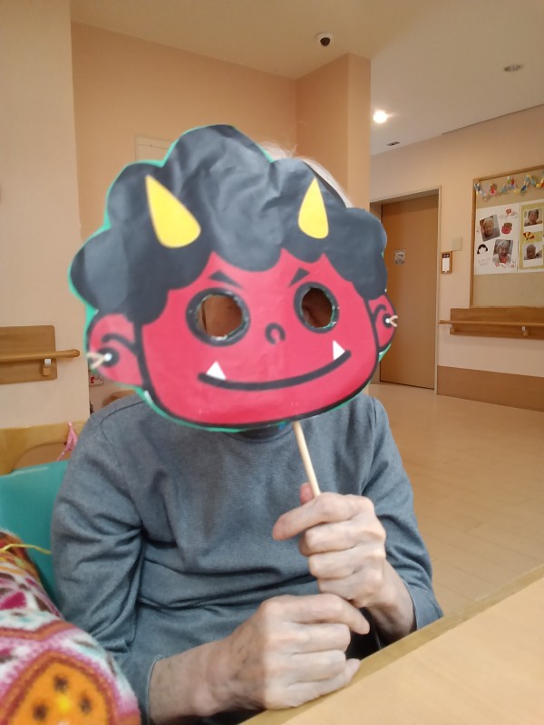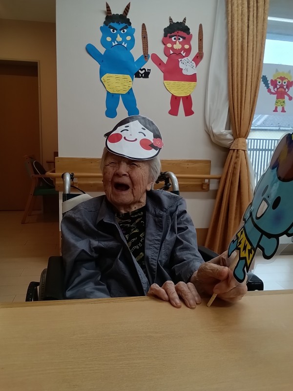 豆まき完了!!後もおやつ前にたくさんお話され笑い声が響き渡りとっても和やかな雰囲気です~^^v