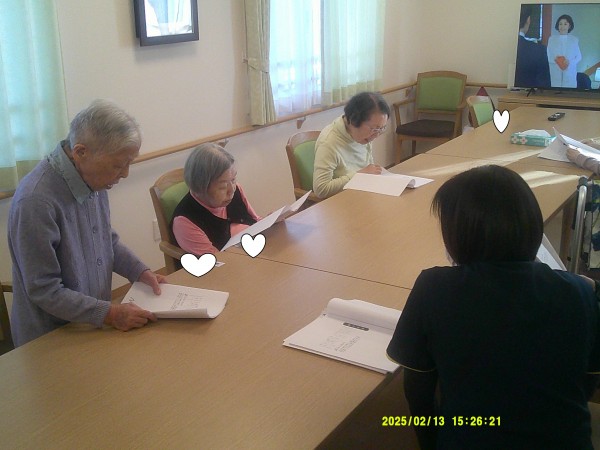 入居者様皆様で楽しく懐かしい歌や皆様が知っている歌を多く歌いました(^^)/