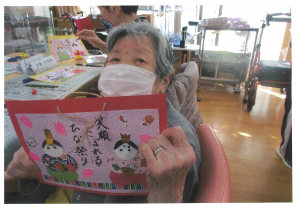 2日目となる今日は、さらに工夫を凝らした作品がたくさん!お雛様を飾る台紙に筆ペンで自由に言葉を書くアレンジも。見本には「笑顔あふれるひな祭り」と書かれていましたが、皆様それぞれの思いを込めて、様々な言葉が刻まれました。一人ひとりの思いが詰まった、世界に一つだけのお雛様飾りになりましたね♪