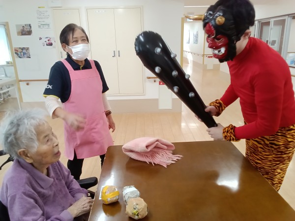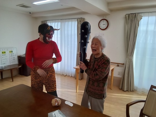 ★☆節分・鬼退治・豆まきレクリエーション赤鬼♪鈴木勝也ホーム長登場③階2025年令和7年✨