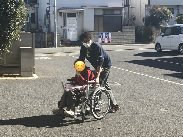 天気も良かったので少し外へ出ていき日光浴でもとご利用者様と外へ。