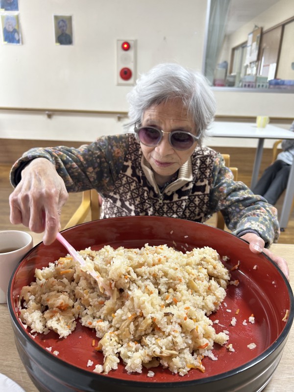 「人参やしいたけなどが入っていてご飯が美味しそうです。早く食べたいですね。」と嬉しそうに仰られました。