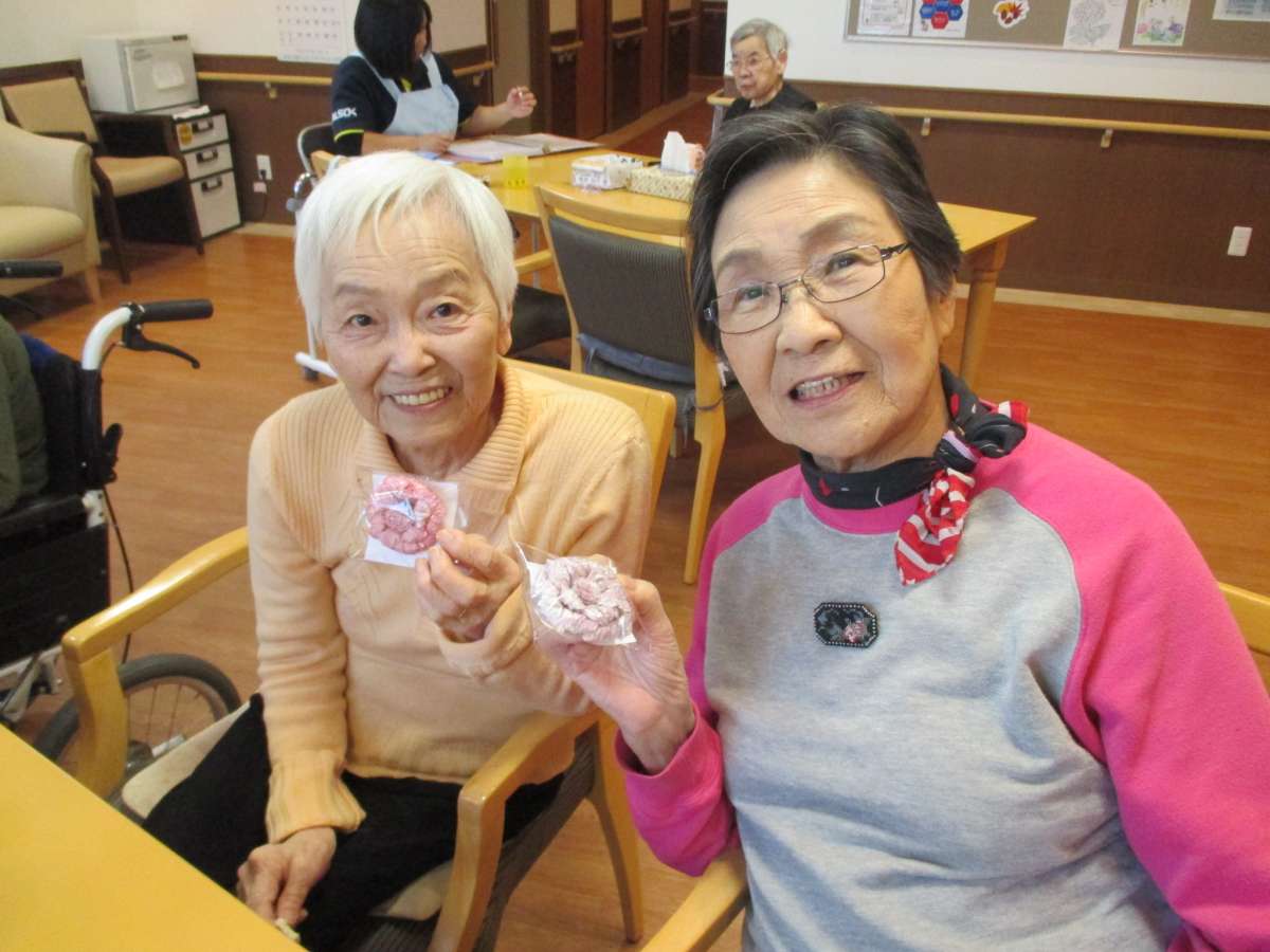 終わりには『べっらどんな』の方々から利用者様へプレゼントをいただきました!なんと皆様手作りのブローチだそうです。