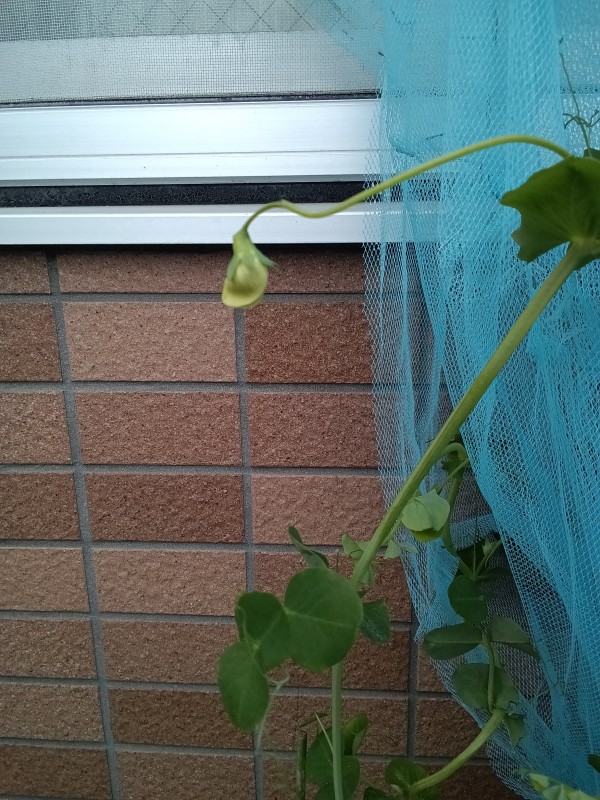 昨年種まきをしたえんどう豆に、花のつぼみが出てきました♪