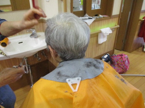 月1回の散髪 ご利用者様の希望や髪が長くなった方が散髪されます。