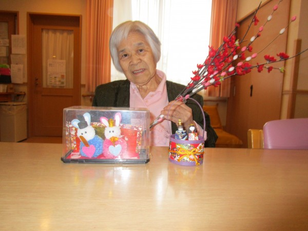 お雛様飾りと一緒に写真を撮りました(^^♪