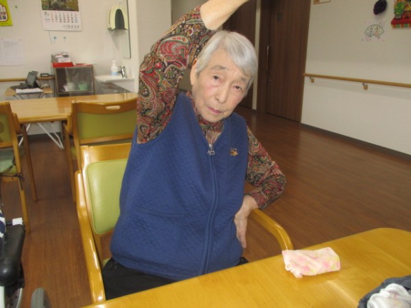 みなさま元気いっぱいでした。手が上手く上がらないわ? 手伝って~?と話されました。少しお手伝いすると”ありがとう”!と喜ばれました(*^_^*)