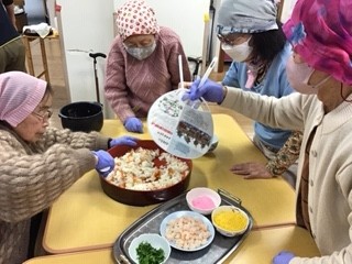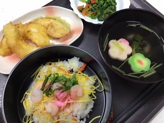 午前中は、恒例の「おひな様散らし寿司」作りです。