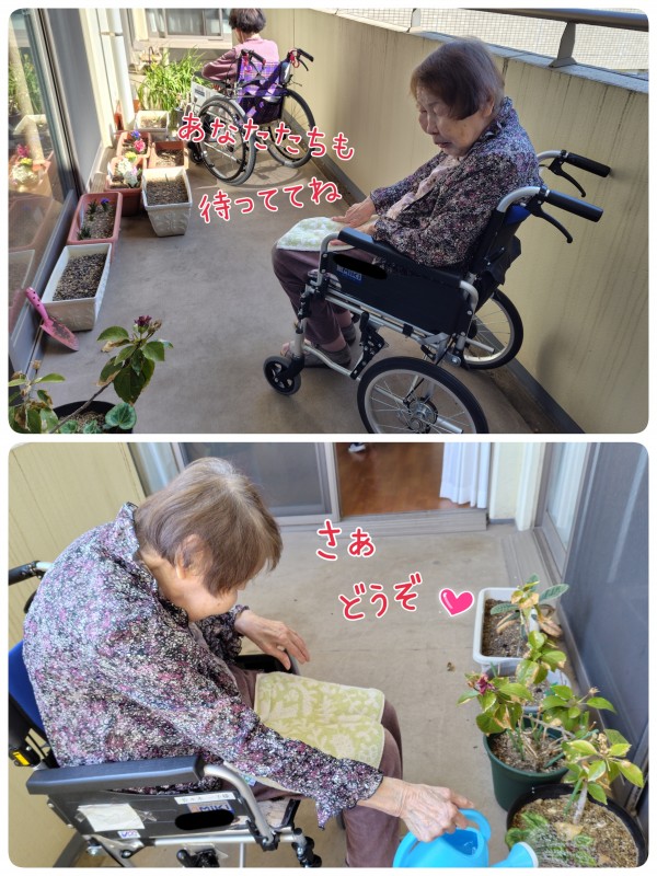 『よく咲いたね〜!がんばったね〜!』と、優しく声をかけながら、お母様方が水遣りをしてくださいます。