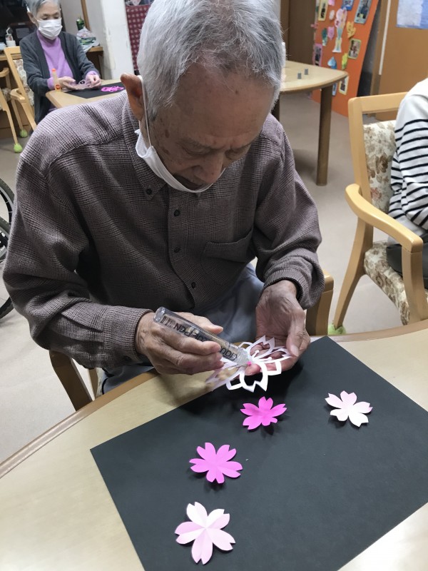桜の飾りを折り紙で作りました。