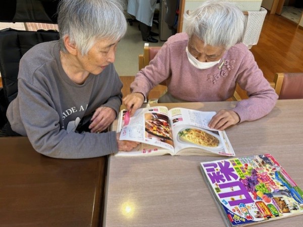 ご入居初日から、席が近い方と一緒に雑誌を読んで