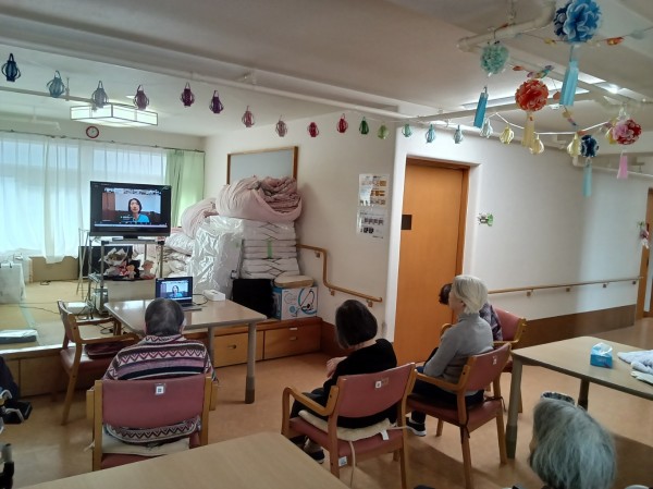 今回は先日4階にて行われたリモート体操の模様を少しご紹介させていただきます。