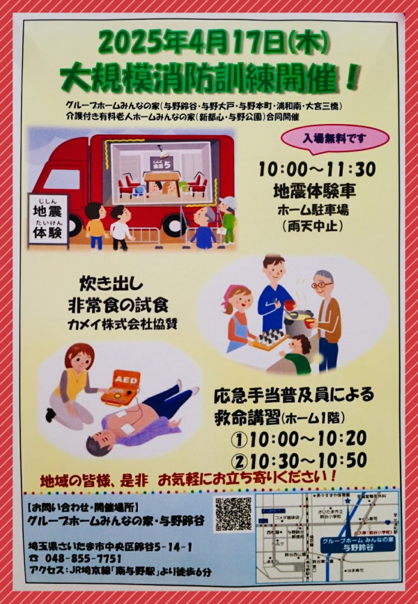 グループホームみんなの家大宮三橋 大規模消防訓練開催予定!!