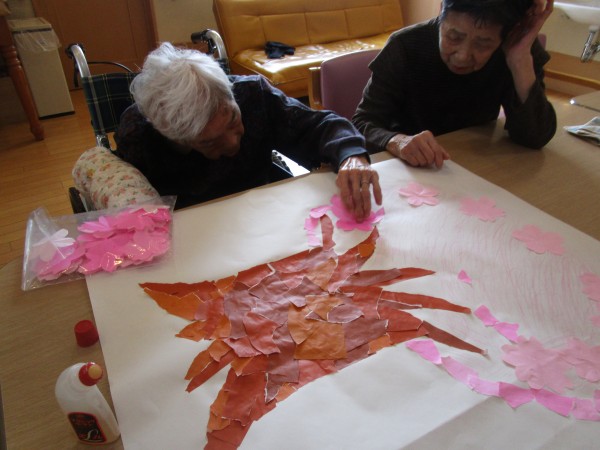 4月の壁飾りを皆さんで作りました(^^)