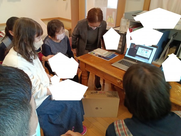 ・施設の平面図 ・色のシール ・付箋やペン ・消火器の模型 ・施設職員や入居者の模型