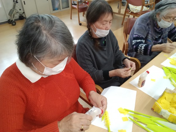 ご利用者様がいっぽんずつ、花びらを張り付けて作ってくださいました。