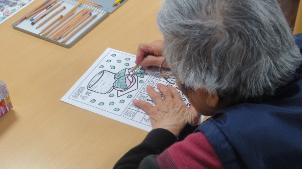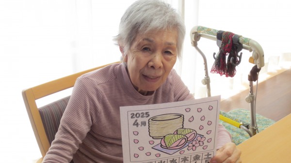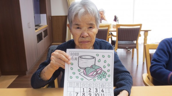さて、本日は先月末に4月の塗り絵カレンダーを制作したので、その時の様子をご紹介します♪桜餅とお花見のイラストのカレンダーです????